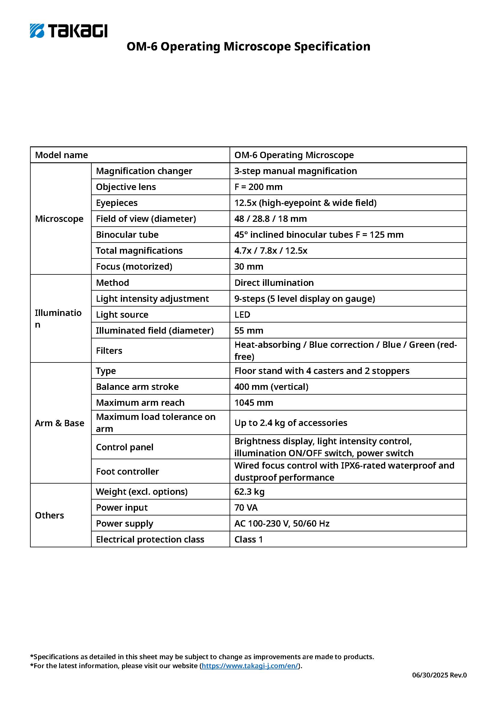 *LED operating life is defined as a state when light intensity drops to 70%. The operating life of the LED used in OM-6 is approximately 40,000 hours, although this is not guaranteed.