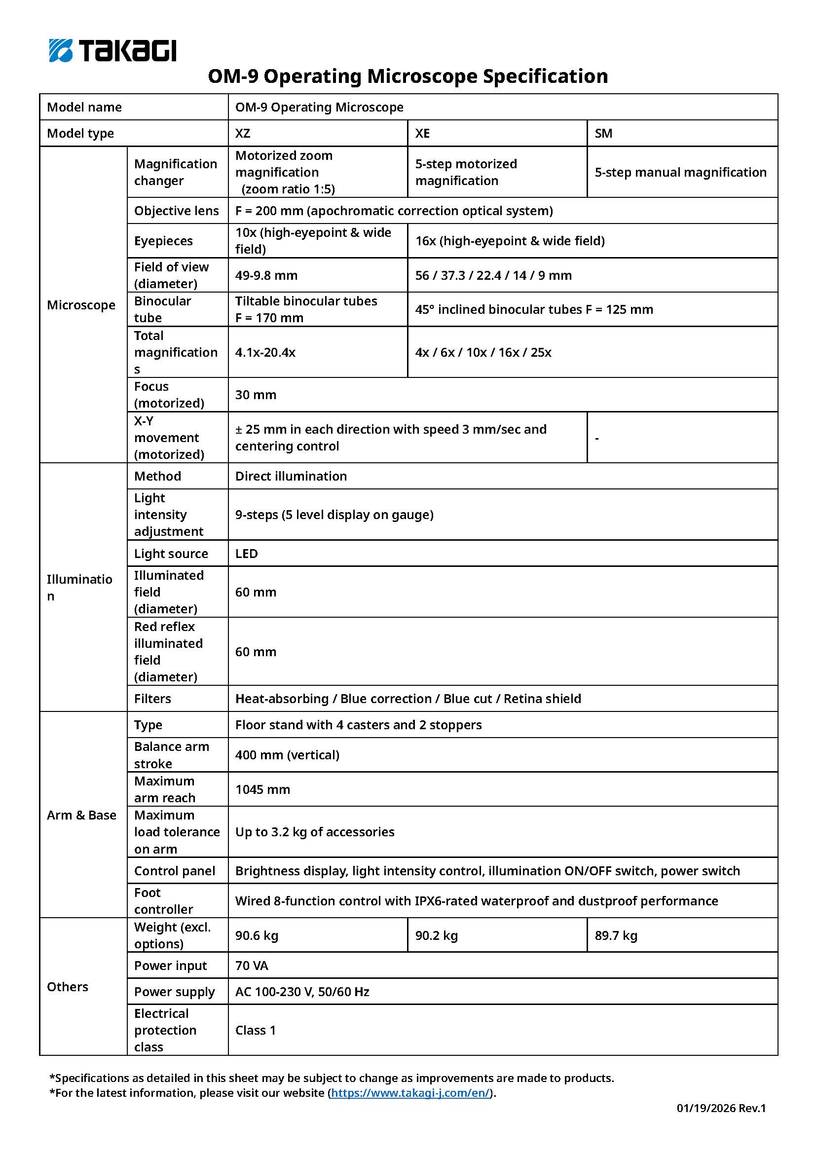 TAKAGI model comparison Operating Microscopes